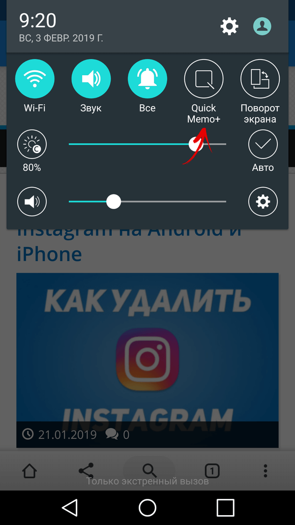 Quick Memo на LG