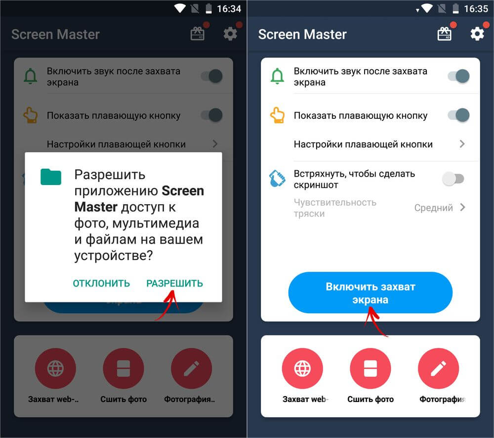 Кстати, в арсенале функций этого приложения есть опция, позволяющая создавать скрины при простом встряхивании аппарата! Весьма удобно, если у вас плохо срабатывает кнопка громкости (например).