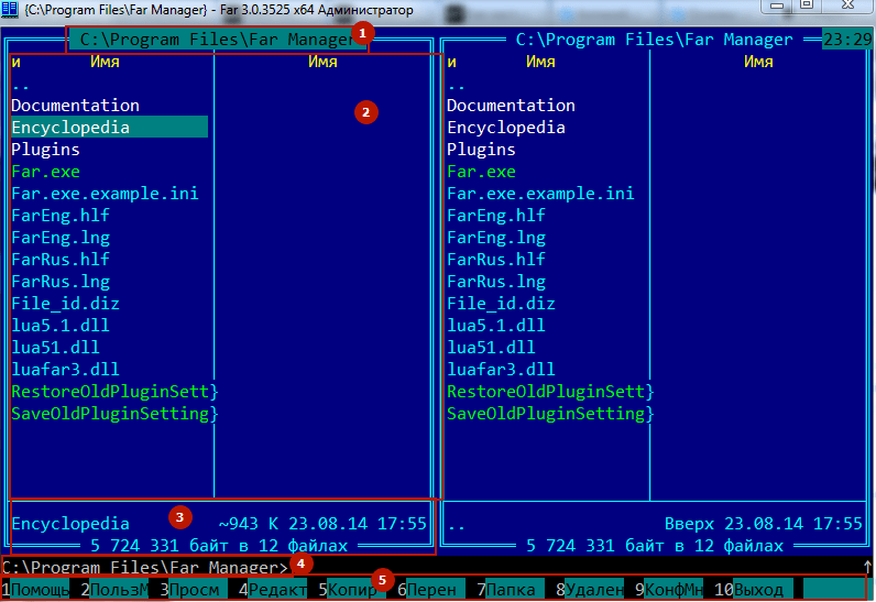 Кстати, стоит заметить, что Far Manager имеет возможность управления мышью. Так, вся панель управления внизу легко управляется ЛКМ. Лично я возможностью этой не пользуюсь, ибо нахожу более удобным и быстрым использовать комбинации горячих клавиш, но допускаю, что кому-то управление мышью будет удобнее.