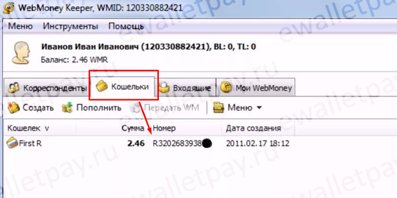 Чтобы посмотреть номер кошелька в WM Keeper WinPro, зайдите в нее и перейдите во вкладку «кошельки». Сразу под строкой действий, вы увидите номер своего кошелька, а также дату его создания и сумму, которая находится на его балансе.