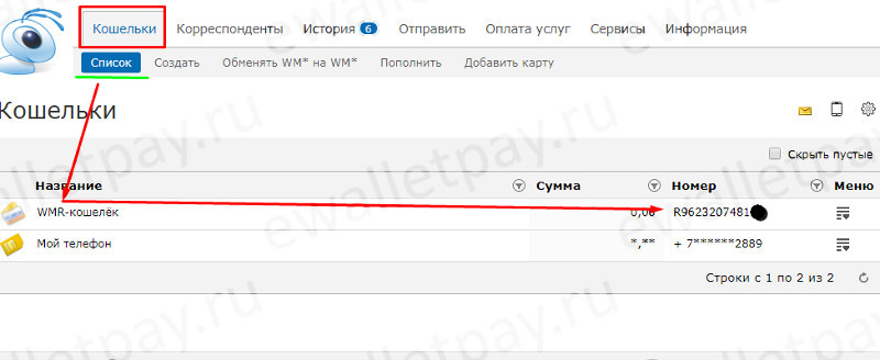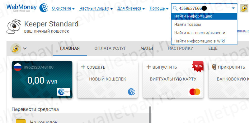 Где посмотреть номер кошелька Вебмани
