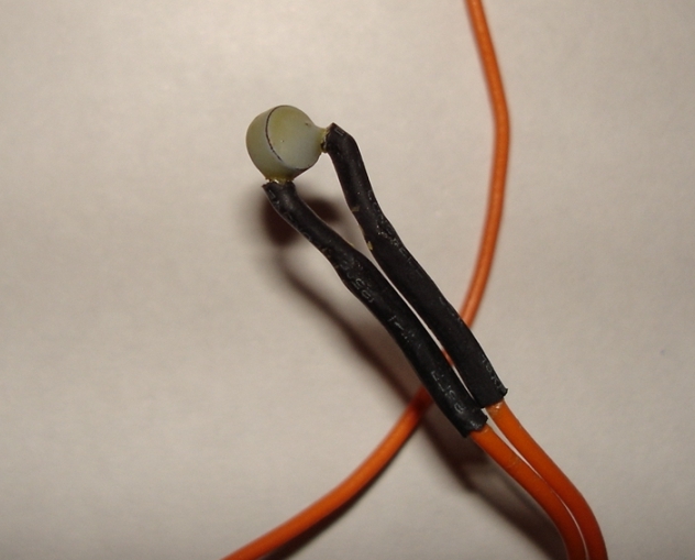 В случае же дисковых термисторов, процесс изготовления контактов заключается в нанесении на них металлического сплава из платины, палладия и серебра, и его последующая припайка к покрытию термистора.