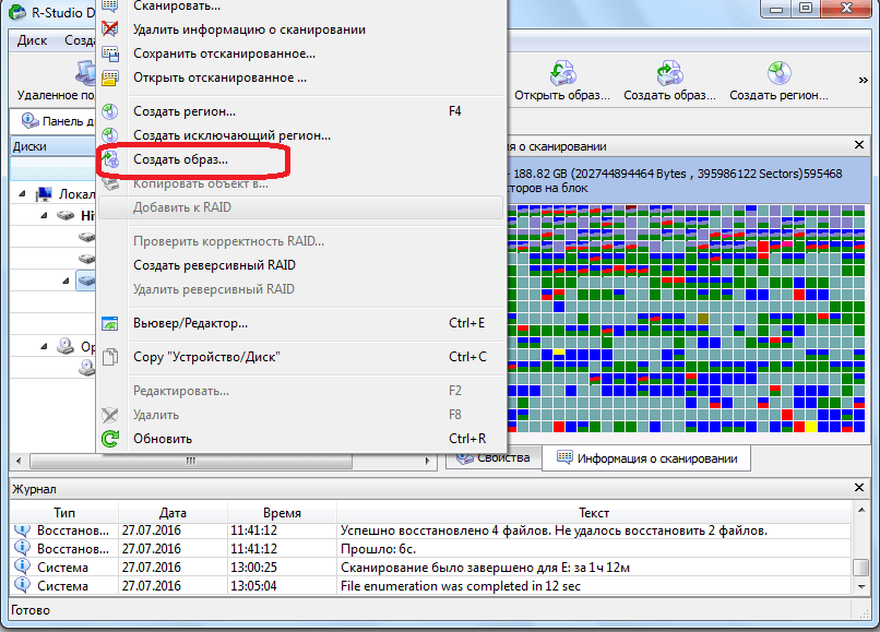 Но перечень достоинств программы R-Studio 5 не ограничивается базовыми функциями. К продвинутым технологиям можно отнести в первую очередь возможность создания образов носителей, после чего их можно будет проанализировать и восстановить.