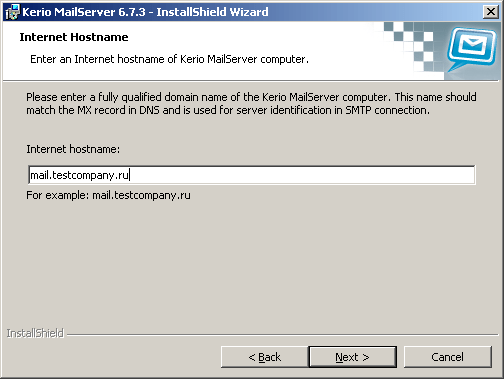 Имя сервера — mail.testcompany.local