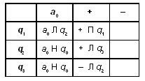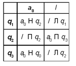 В каждой клетке таблицы, соответствующей некоторому символу ai и некоторому состоянию qj, находится команда, состоящая из трех частей
