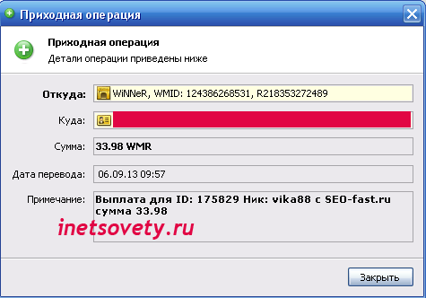 Вот скрин одной из моих выплат из Сеоспринт:
