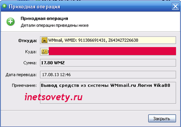 Скрин выплаты из wmmail: