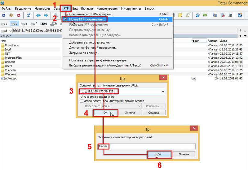 2. Программа Total Commander или любой другой FTP клиент (под Windows)