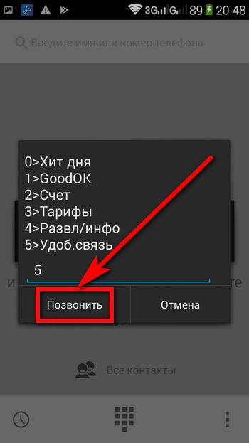 - В первом открывшемся системном окне ввести в текстовом поле цифру 5 («Удобная связь»), после чего нажать на кнопку «Позвонить». Если надобность в платеже отпала, следует воспользоваться расположенной рядом с ней кнопкой «Отмена».