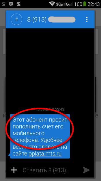- Адресат получит SMS с просьбой пополнить баланс отправителя любым удобным способом; сам мобильный оператор предлагает использовать для этого сервис «МТС-Деньги».