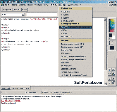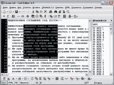 Программа поддерживает кодировки Win-1251, Dos-866, Koi-8r, Mac и ISO-8859-5 и удобно переключается между ними. В редактор встроены четыре утилиты для облегчения работы: просмотр буфера обмена, генератор паролей, калькулятор и сведения о системе. Из оригинальных способностей этого редактора стоит назвать встроенный генератор паролей.